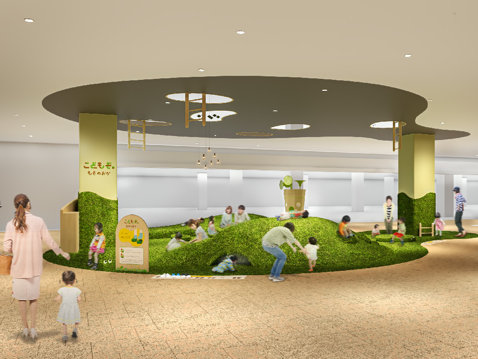 おやまにのぼったり、おおきなベンチでくつろいだり、親子でゆったりと過ごせる場所です。ここに住んでいるmozoの住人を探してみてくださいね。