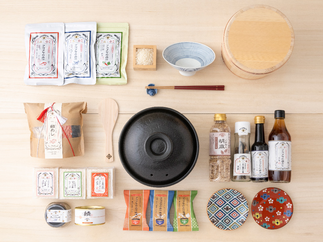 一杯の炊き立てのごはんを中心に広がるおいしい輪をコンセプトに全国から厳選されたお米と、お米に相性抜群のご飯のお供、出汁などの食品や、食器・調理道具などを扱うライフスタイルショップ